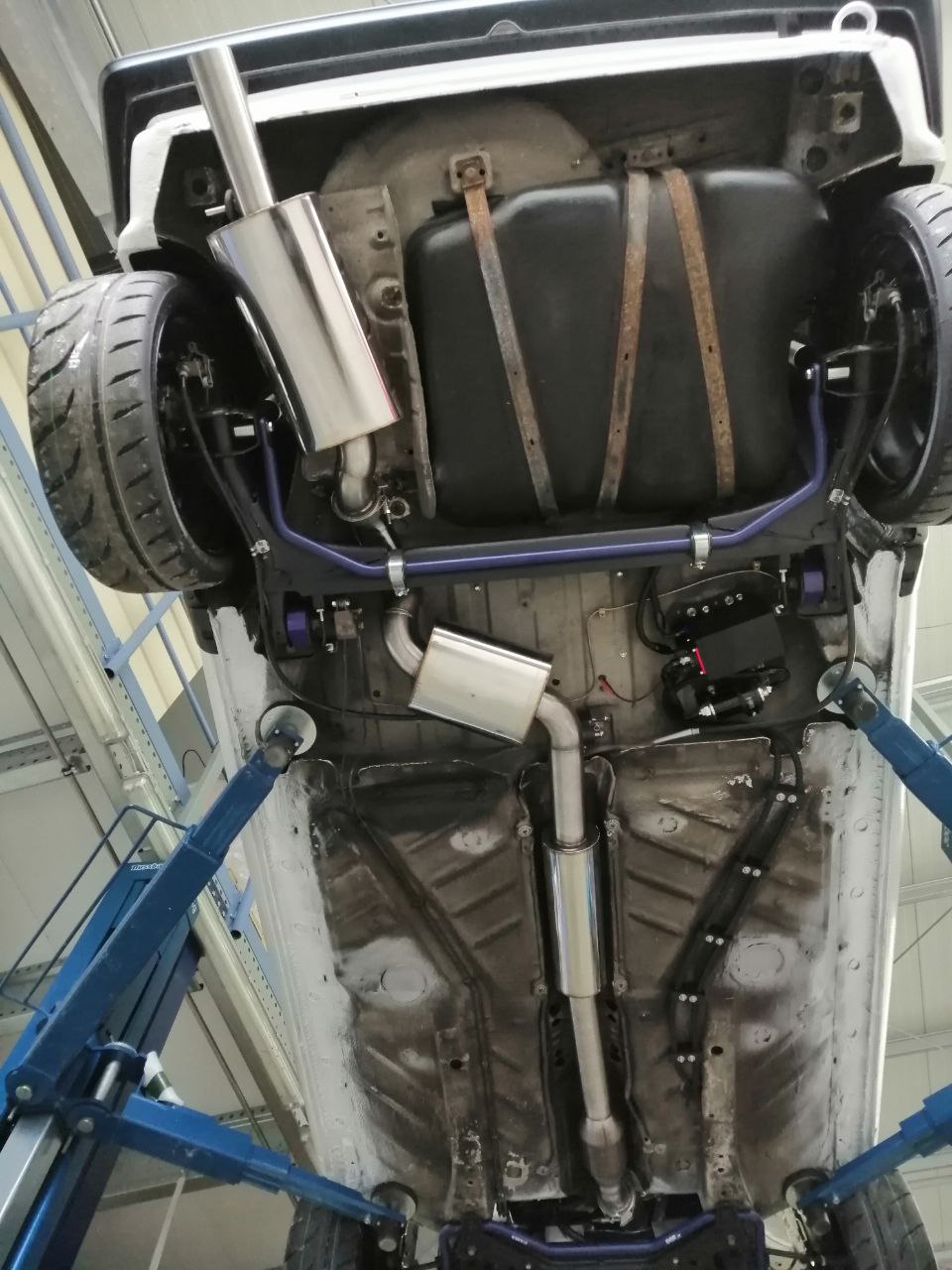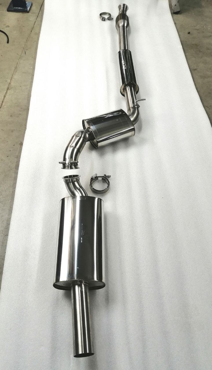Handgefertigte Edelstahl Abgasanlage in 76mm für Golf3 VR6 Turbo mit 76mm Endrohr.