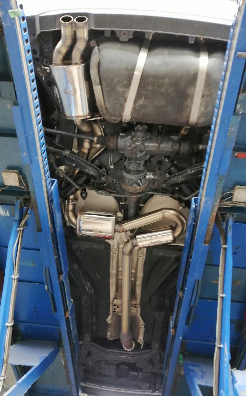 Handgefertigte Edelstahl Abgasanlage in 76mm für Golf3 VR6 syncro Turbo mit 76mm Endrohr.