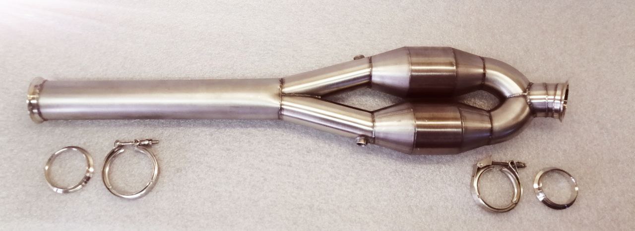 Das Katmodul ist hat eine Gesamtlänge von 117cm ,die Rohrführung geht von 2x70mm auf 89mm und wird beidseitig mit V-Bandschellen geliefert.