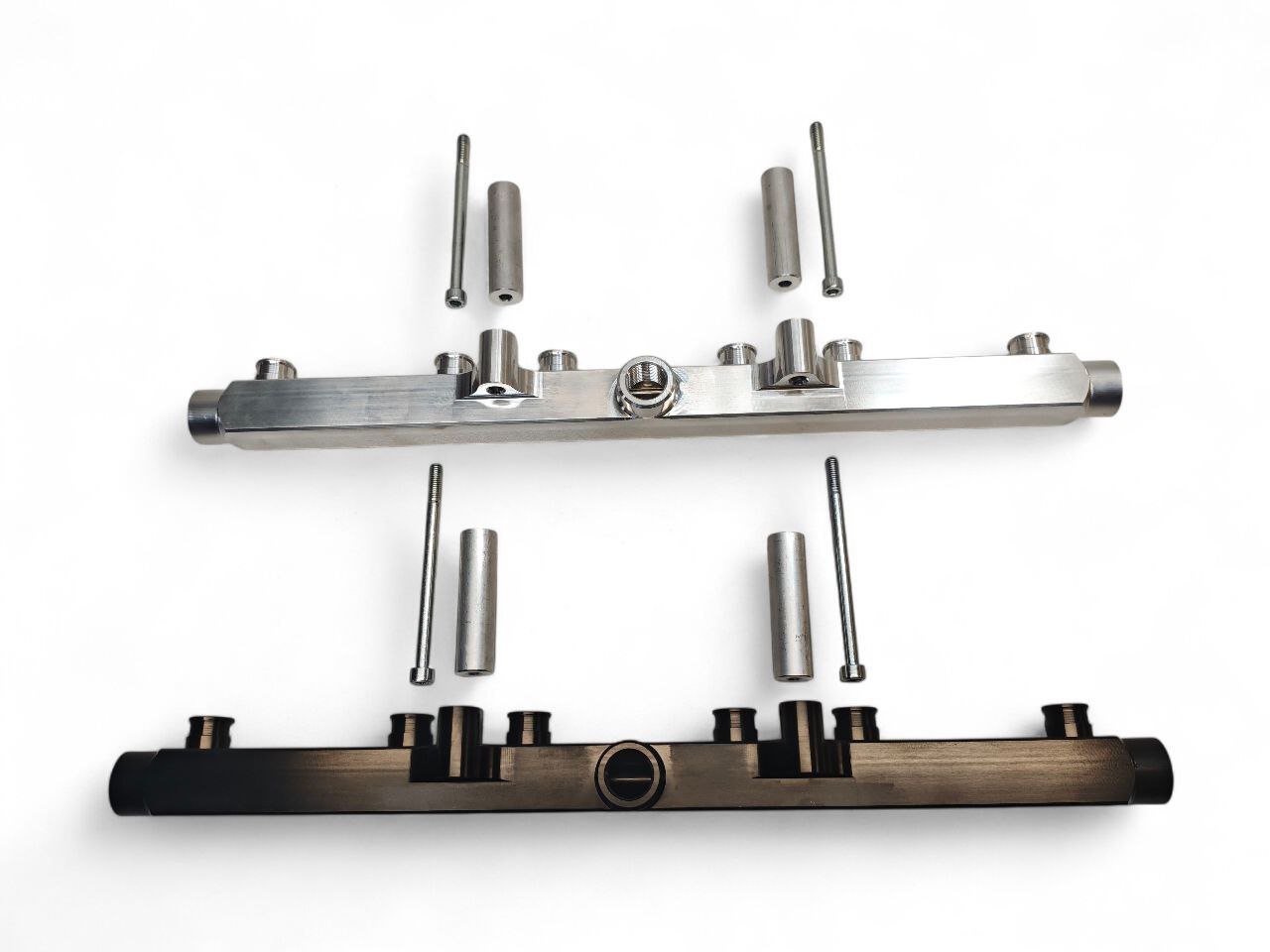 Unsere Einspritzleisten sind aus dem Vollen gefräst und wahlweise in billet Optik oder schwarz eloxiert erhältlich.