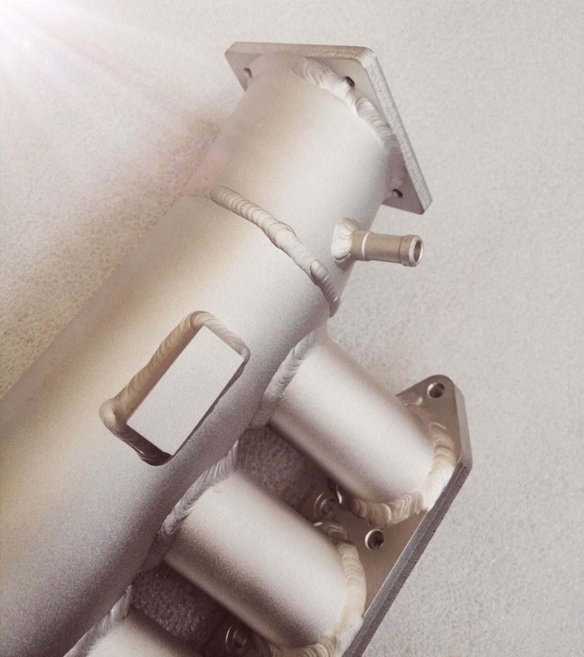 Ein 12mm Anschluss für Bremskraftverstärker und 2x4mm Anschlüsse für Unterdruck wie Pop Off und Benzindruckregler sind schon fertig angebracht .