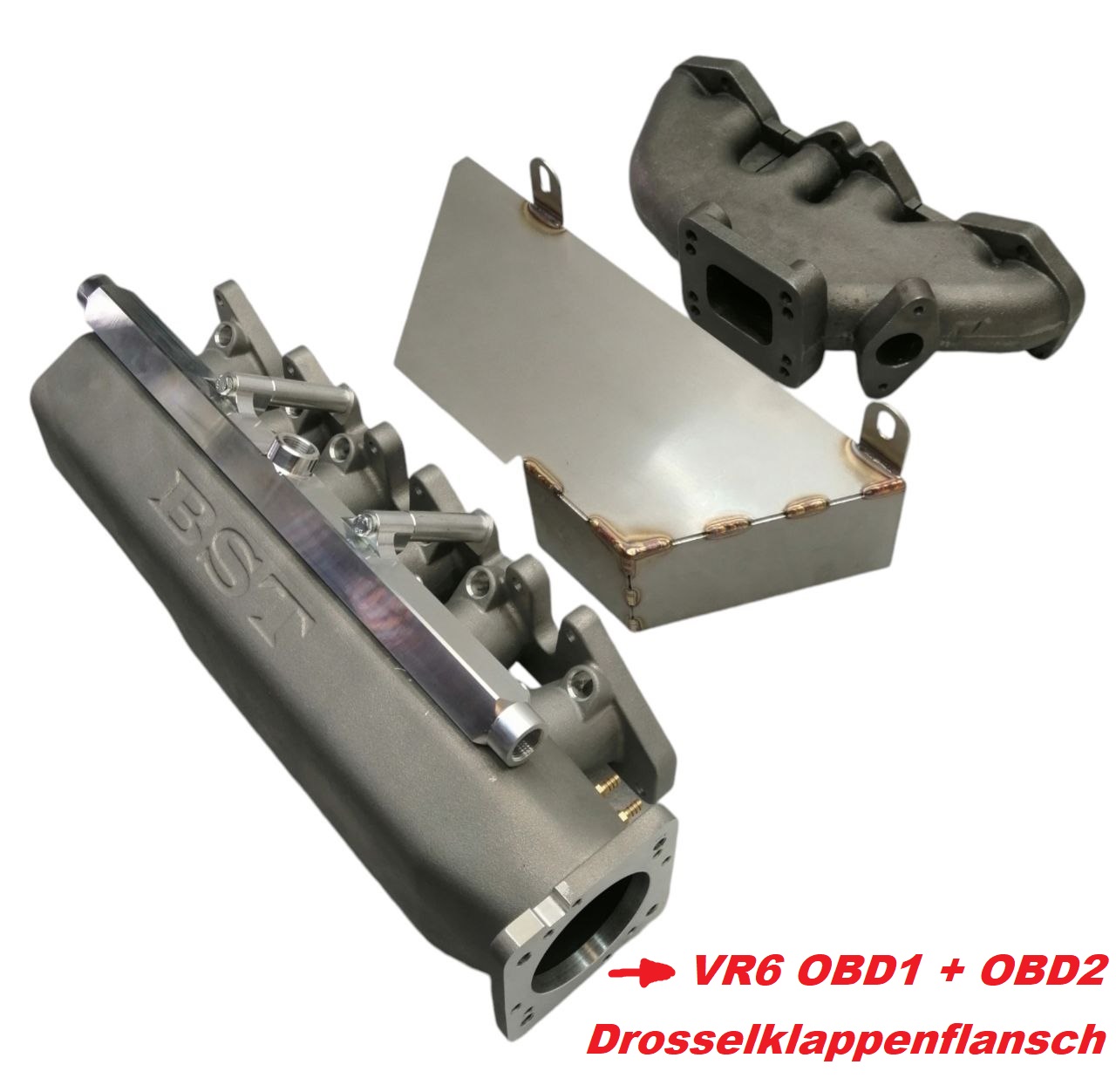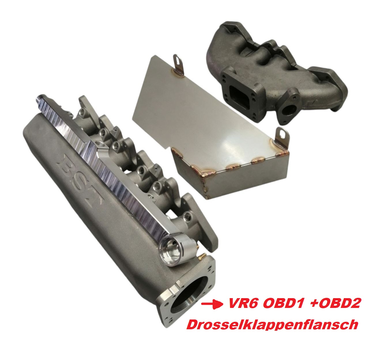 + VR6 Turbo Ansaugbrücke mit innenliegenden Trichtern ( Auswahl Drosselklappenflansch VR6 oder R32 )